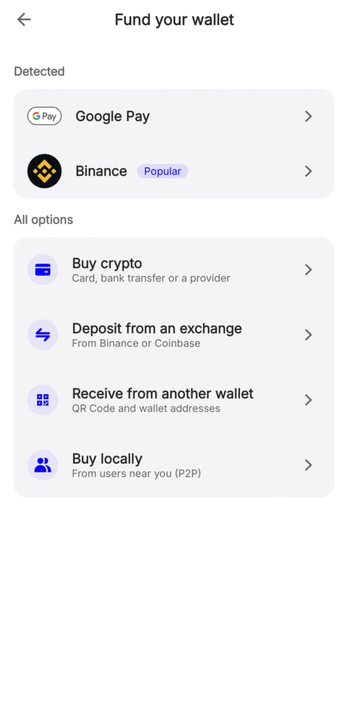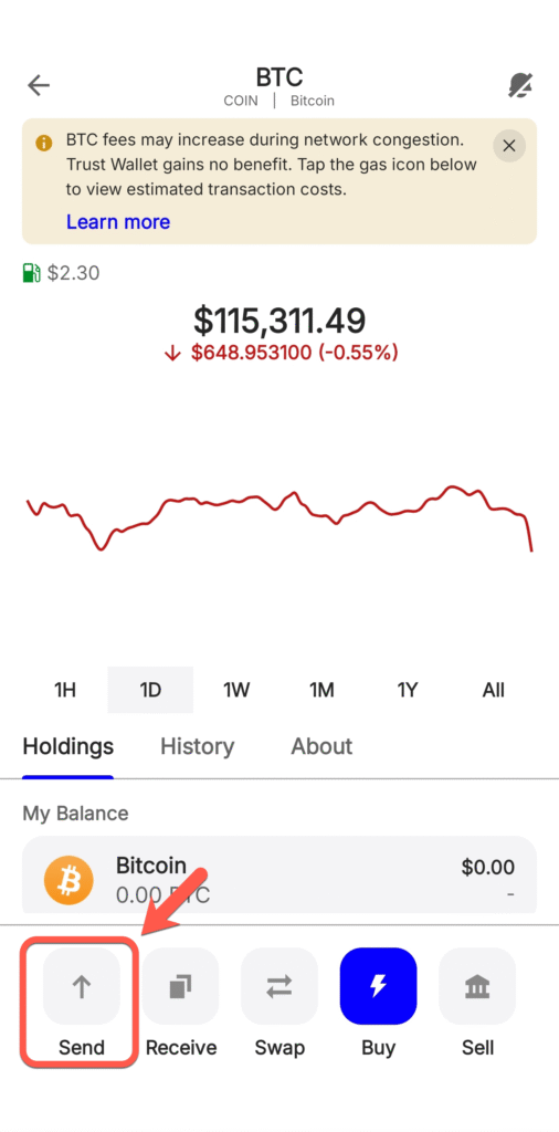 - Buy Bitcoin via Trust Wallet’s “Buy” button (credit card).