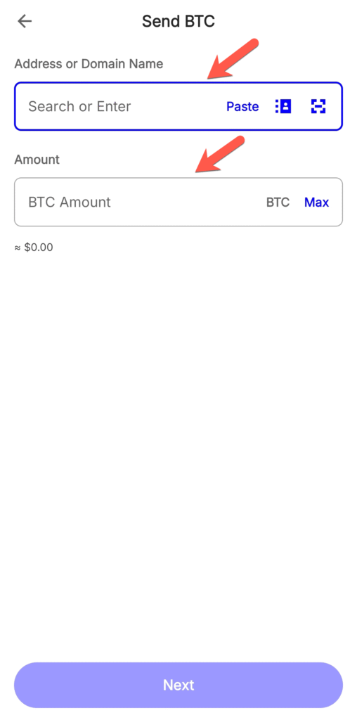 - Bitcoin address (long string starting with “1”, “3”, or “bc1”)
