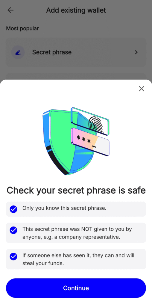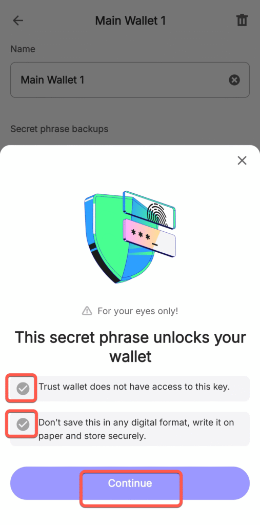 This is the most critical part—your 12-word recovery phrase is the only way to restore your wallet if you lose your phone. Or you also can use your 12-word recovery phrase to restore it on a new device.